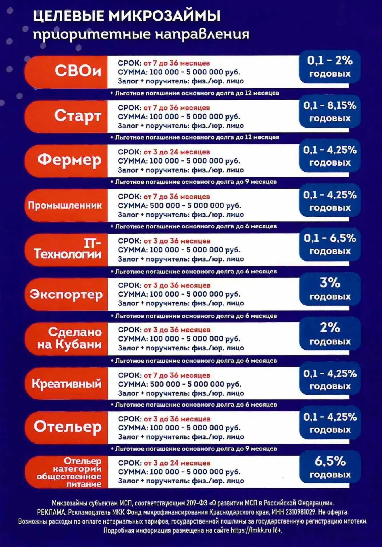 «Сделано на Кубани» — для локальных производителей. Ставка 2% годовых.