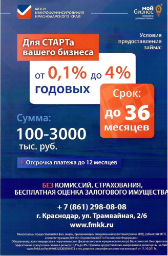 Для консультаций работает горячая линия Фонда микрофинансирования Краснодарского края: 8 (861) 298-08-08