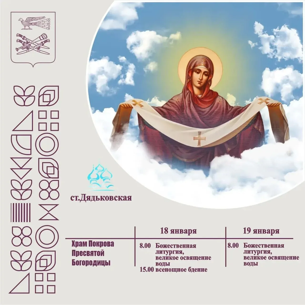 🗓️ Крещенские купания будут проходить: с 22:00 18 января по 02:00 19 января.