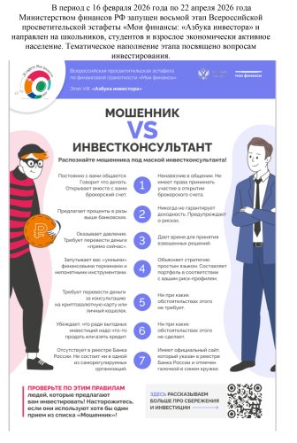 Всероссийская просветительская эстафета «Мои финансы: «Азбука инвестора» 27.02.2026 Светлана Юндина НОВОСТНАЯ ЛЕНТА - Национальный проект "Производительность труда", СМИ о финансовой грамотности, Управление экономики