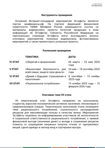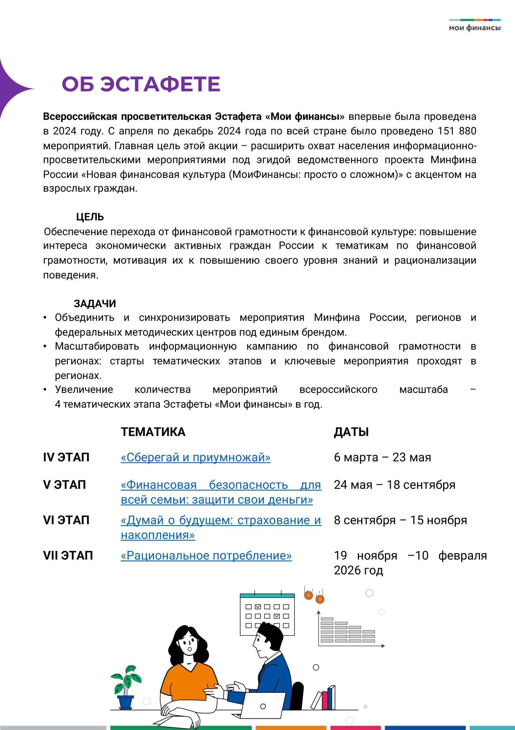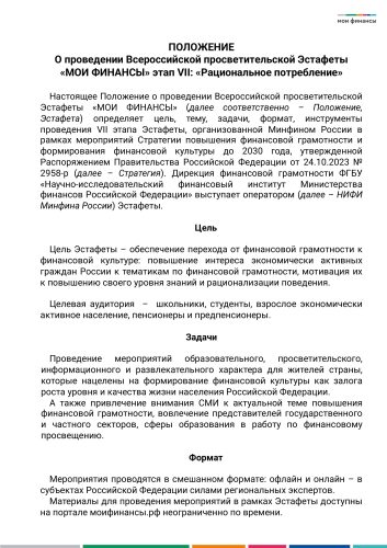 ВСЕРОССИЙСКАЯ ПРОСВЕТИТЕЛЬСКАЯ ЭСТАФЕТА «МОИ ФИНАНСЫ» Этап VII: «Рациональное потребление» 16.02.2026 Светлана Юндина Новости, Управление экономики Руководство по организации и проведению мероприятий Эстафеты
