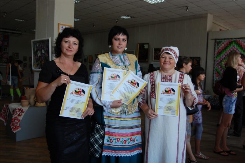 Наш район представляли две признанные мастерицы – лауреаты Международных, Всероссийских, краевых выставок Надежда Кожевникова с работами, выполненными из соломки и Екатерина Карякина, которая работает в технике «вышивка крестом и бисером».
