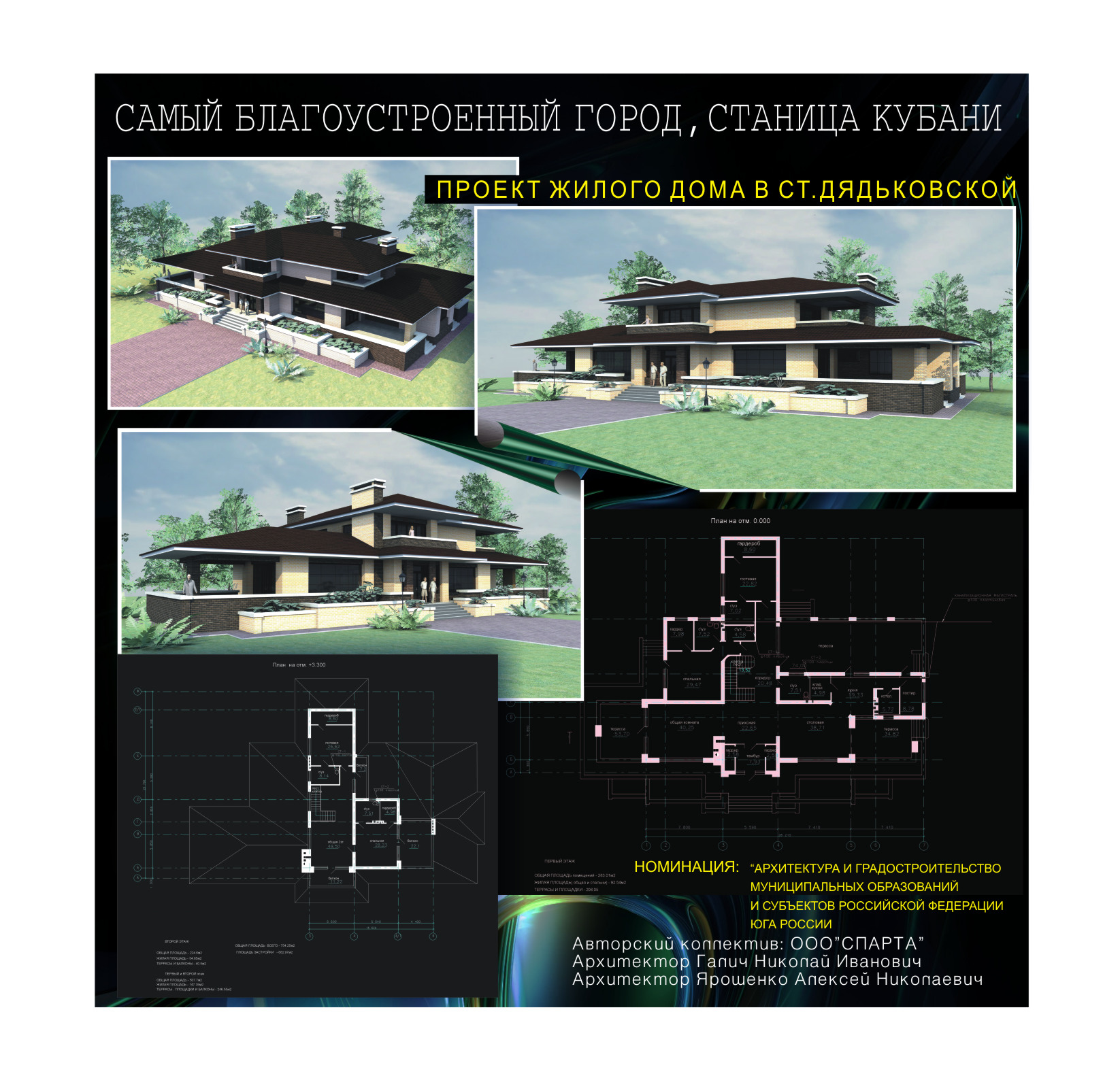 Отдел архитектуры и градостроительства подготовил два планшета и информацию главного архитектора для участия в XII открытом смотре-конкурсе на лучшее архитектурное произведение (проект) 2011-2013 года. Планшеты подготовлены по проекту жилого дома в Дядьковской и бизнес-центра в Кореновске по улице Красной, которые в ближайшие год-два реально появятся в городе и станице.
